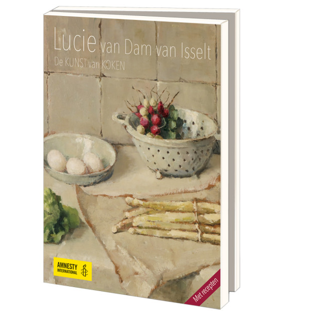 Kaartenmapje met env, groot: De Kunst van Koken, Lucie van Dam van Isselt, Amnesty International