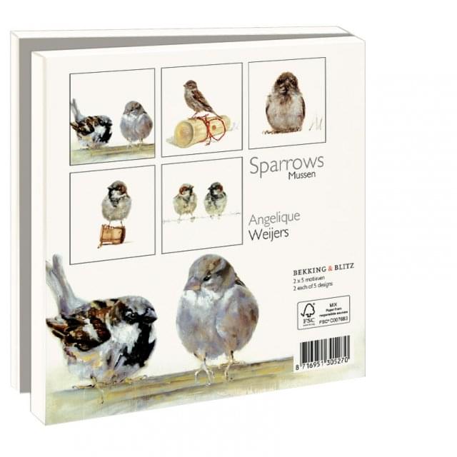 Kaartenmapje met env, vierkant: Sparrows, Angelique Weijers