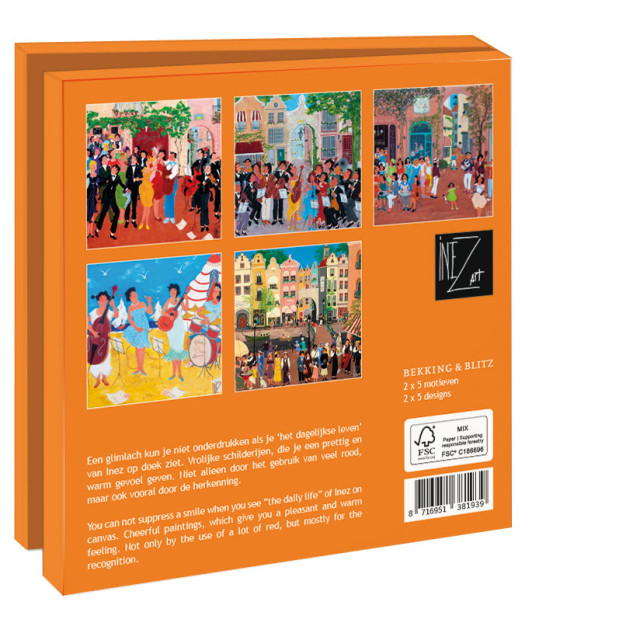 Tien dubbele kaarten (2 x 5 verschillende motieven) of 10 verschillende kaarten met 10 luxe enveloppen, netjes opgeborgen in een aantrekkelijk kaartenmapje. Op de achterkant van het mapje staan de verschillende motieven afgebeeld. Zo vindt u snel de kaart die u nodig heeft. De binnenkant van de dubbele kaarten zijn blanco. Alle ruimte dus voor uw persoonlijke boodschap.