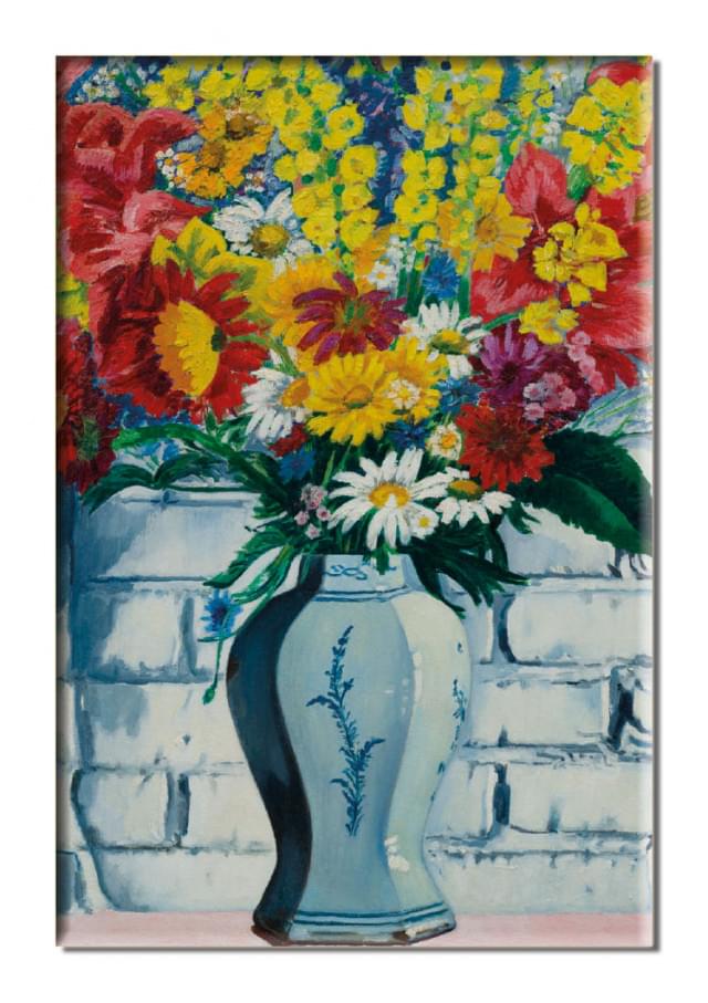 Over Koelkastmagneet: Vaas met bloemen tegen muur, Charley Toorop, Museum MORE