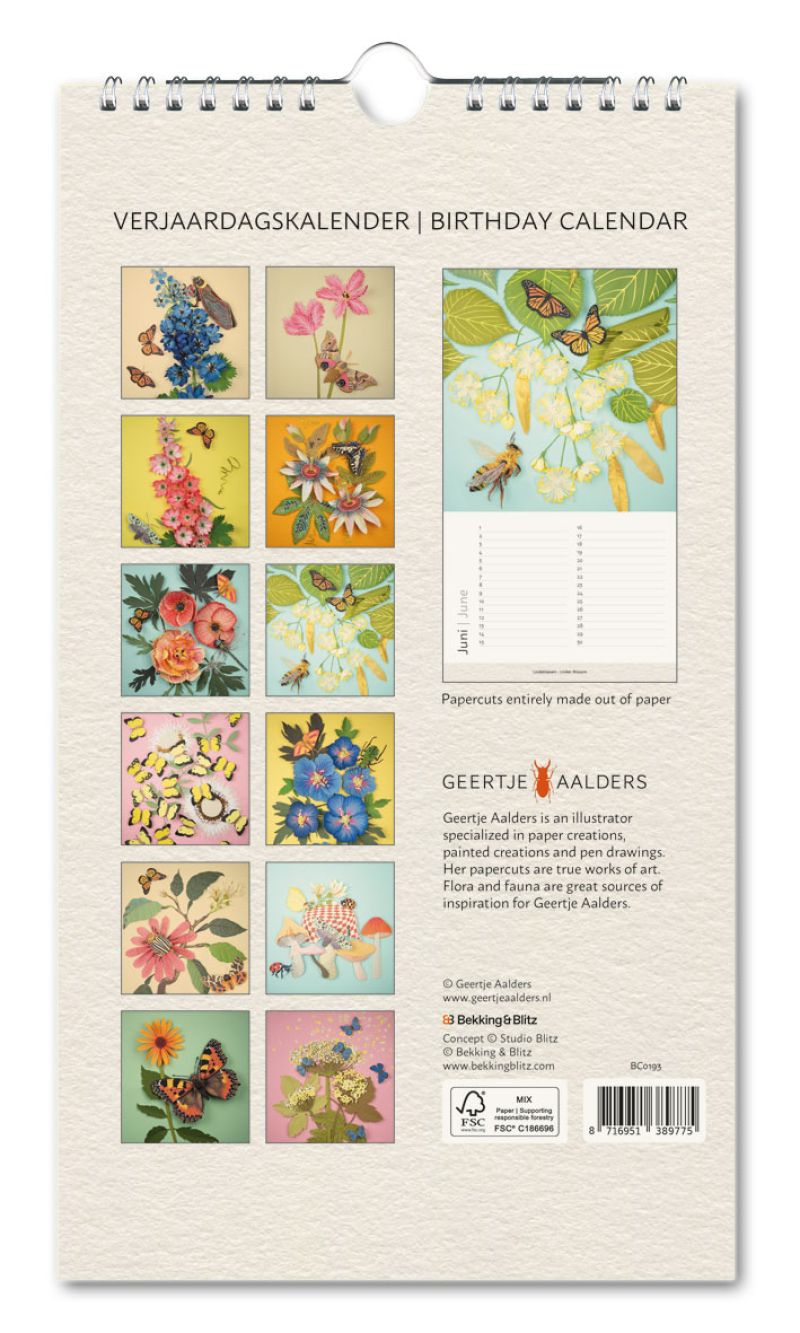 Nooit meer een verjaardag of een ander memorabel moment vergeten met onze kunstige verjaardagskalender. Bij elke maand een andere illustratie. Hang de kalender eenvoudig aan de muur met het handige ophangoog.
